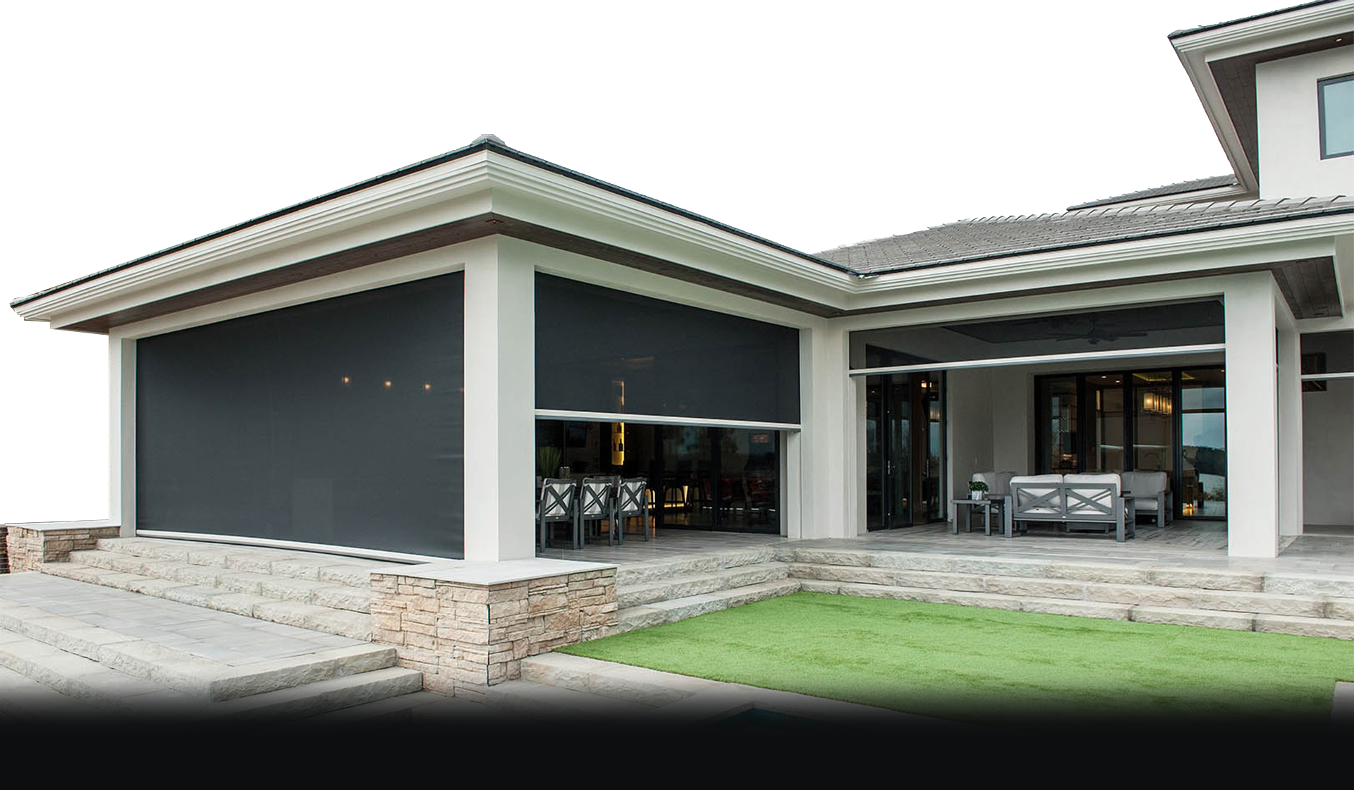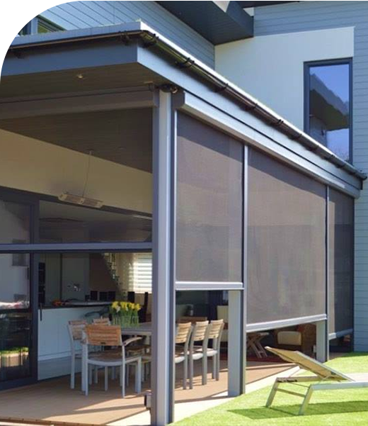 Our Executive Motorised Outdoor Screens are the perfect solution for patios, alfresco areas, verandas, and large openings.